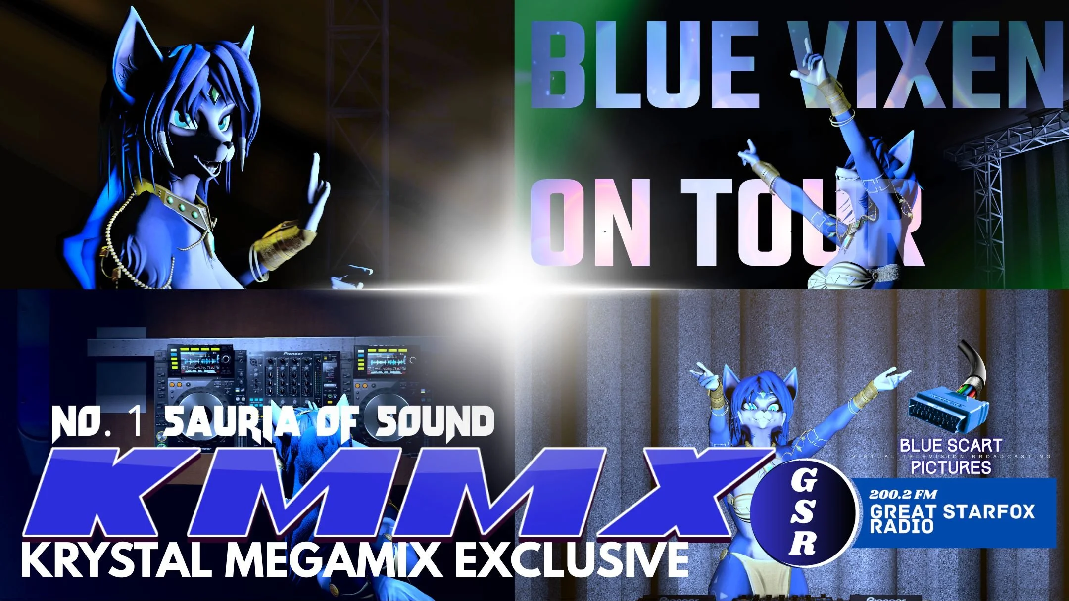 TeaPenn introduces Blue Scart Pictures, powered by OBS in association with Virtual Mixers Project, to deliver high-quality broadcasting for the Krystal Megamix Blue Vixen On Tour virtual shows! Blue Scart holds no copyright for any music or models used in films!